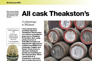 I have always had a sneaking regard for Theakston’s Old Peculier, one of those archetypical great beers of England. Full bodied, dark. malty, plenty of power at 5.6%ABV and balanced with just the right amount of bitterness (29BU) from Challenger, Fuggles and Target. It just seems to slip down defying its gravity and tempting you into immoderation. When I heard that all of Theakston’s cask beers had recently returned to their home at Masham in North Yorkshire I just had to pay a visit.