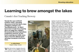 Twenty-five-year-old Brett Corbiere made a shocking discovery on his first day in class at Niagara College’s new Teaching Brewery – he didn’t know how to taste beer properly. Since he began the college’s Brewmaster/Brewery Operations programme however, he has been acquiring new skills every day to reach his ultimate goal – opening a brewpub in his home town.