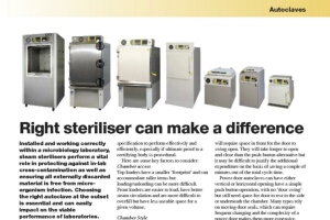 Installed and working correctly within a microbiology laboratory, steam sterilisers perform a vital role in protecting against in-lab cross-contamination as well as ensuring all externally discarded material is free from microorganism infection. Choosing the right autoclave at the outset is essential and can easily impact on the viable performance of laboratories.