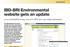 Brewer & Distiller International • April 2012 • www.ibd.org.uk 39 The IBD–BRI Environmental website has been expanded to include case studies on what brewers do to minimise energy, water and waste and to reduce costs. The case studies were collected from a worldwide survey in 2011; this study was supported by the IBD Grants Committee. The new site brings together more information on current techniques used by brewers to minimise environmental impact and to reduce costs.