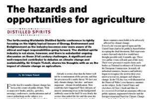 The forthcoming Worldwide Distilled Spirits conference is rightly focusing on the highly topical issues of Energy, Environment and Enlightenment as the industry becomes ever more aware of its ethical and legal responsibilities going forward. The distilled spirits industry is not alone, however, and there is substantial ongoing discussion on these 21st century challenges. A significant and well-respected contributor to debates on climate change and sustainability, Sir Crispin Tickell, shares his thoughts with us on the impact of climate change on agriculture.